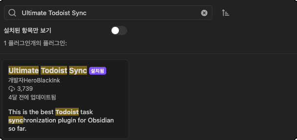 플러그인 저장소 : https://github.com/HeroBlackInk/ultimate-todoist-sync-for-obsidian