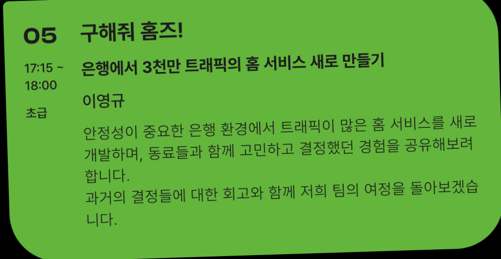 개인적으로 부스를 탐방해서 다른 회사의 개발적인 이야기를 해보고 싶었는데 소원성취를 한 것 같고 이번 발표 세션에서 코틀린에 대해서 너무 많이 언급이 되어서 이제는 정말 코틀린을 찍먹이라도 시작해야겠구나...